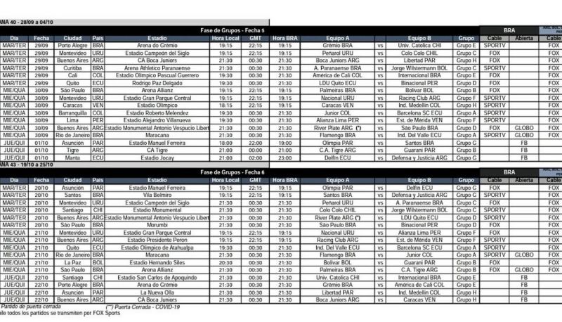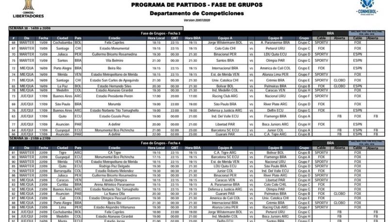 Tiempo de lectura: 1 minuto, 28 segundos20 DE JULIO 2020 - 16:45 La Conmebol ratificó la reanudación de la Copa Libertadores y los equipos argentinos jugarán todos el mismo día. Mirá el fixture...