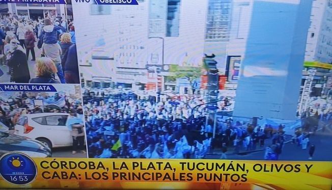 El epicentro de la protesta es el Obelisco, pero también se realizan manifestaciones frente a la quinta de Olivos y en las ciudades de La Plata, Córdoba y San Miguel de Tucumán, entre otras.