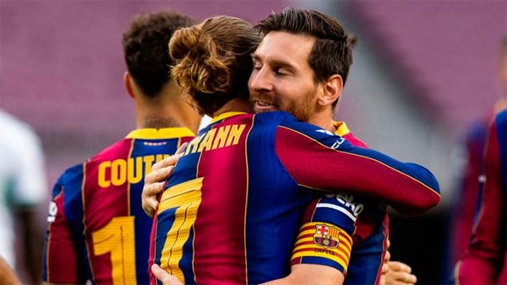 No necesitó demasiado tiempo el equipo del holandés Ronald Koeman para encontrarse con el primer gol del encuentro ya que, a dos minutos de iniciado el duelo, un genial pase al vacío de Messi para el lateral Jordi Alba terminó con un centro de éste a Griezmann y el 1-0 para los blaugranas.