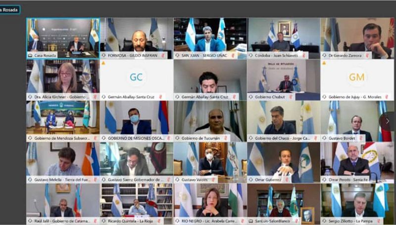 El gobernador de Santiago del Estero, Dr. Gerardo Zamora mantiene en estos momentos una reunión virtual, en la que participa el presidente de la Nación, Alberto Fernández y el resto de los mandatarios provinciales.