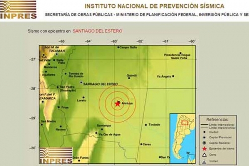 Curiosamente una hora después del fuerte terremoto que dejó hasta ahora 8 muertos y que se percibió con intensidad en nuestra provincia, se registró un temblor de 4,3 de magnitud con epicentro a escasos 8 km de Añatuya y a 158 Km al SE de Santiago del Estero Capital.