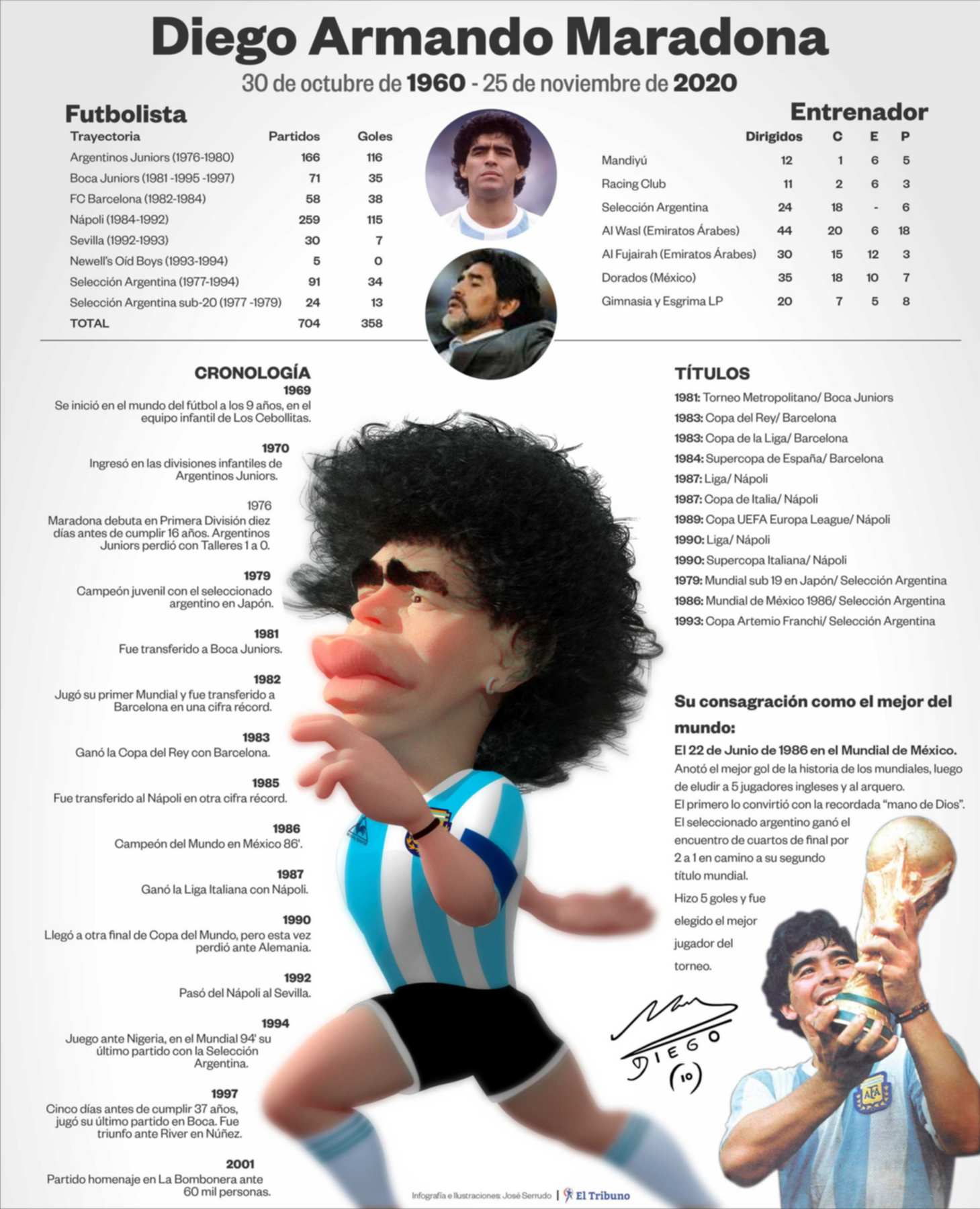Parecía imposible que sucediera porque Diego Armando Maradona gambeteó tanto adentro y fuera de la cancha que hasta la muerte misma iba a evitar. Pero no. Ayer murió el mejor jugador de todos los tiempos; un paro cardiorrespiratorio apagó su vida a los 60 años después de haber vivido entre las luces de la gloria del fútbol mundial y las oscuridades propias de sus adicciones.