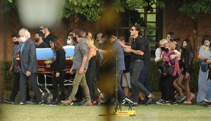 Su exrepresentante y amigo personal, Guillermo Coppola junto a Hernán López Maradona, el sobrino de Diego, encabezaban la fila llevando el féretro. Detrás de ellos se veía a Jana, una de las hijas que reconoció como propia hace un tiempo y del otro lado su hermano Lalo Maradona.