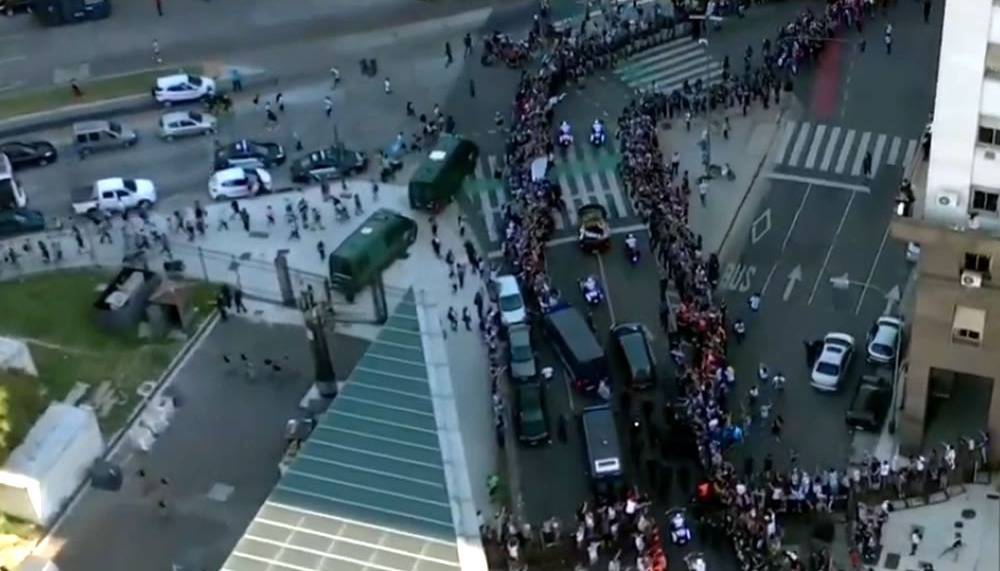 Luego de más de tres horas de corridas e incidentes afuera y dentro de la Casa Rosada, todos volvieron a unirse en el eterno grito "Olé, olé, olé, Diego, Diego", mientras el cortejo abandonaba la zona de Plaza de Mayo.