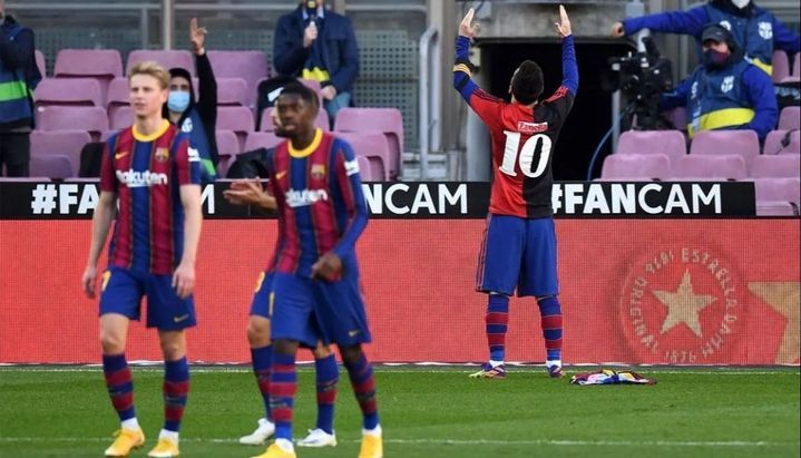 Messi jugó contra Osasuna en la Liga, luego de descansar en la semana en Champions. Como todo el mundo del fútbol, a él lo golpeó la muerte de Maradona y lo expresó en redes sociales. Y ahora con un gesto que recorre el mundo y que pone a Newell’s en boca de todos. Un guiño para el Diego, que mira de arriba cómo Leo lo homenajeó con una camiseta que él quiere mucho. Se sacó la del Barcelona y, con los 18 grados de temperatura que había, tenía debajo la 10 de Newell’s: y con las manos tiró un beso hacia el cielo.