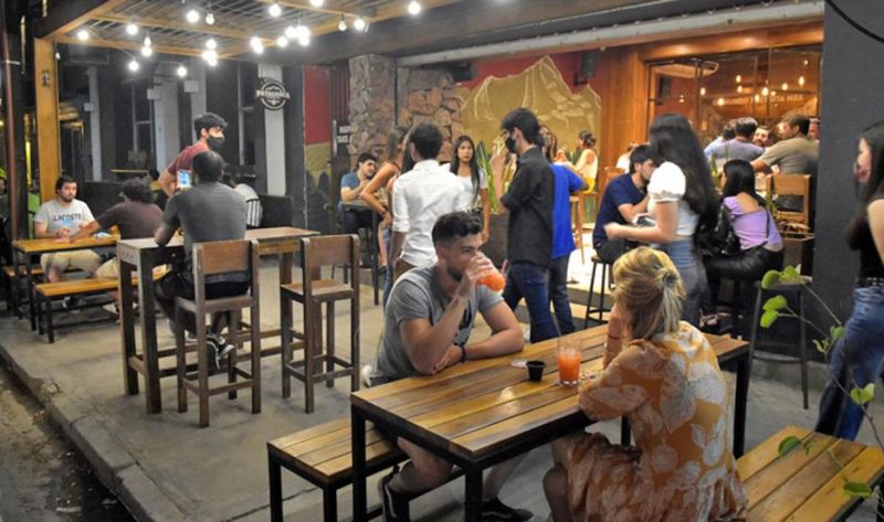 La ampliación del número de personas por mesa bajo los protocolos de la actividad que comenzó a regir desde este domingo, motivó que muchas personas volvieran a los bares y restaurantes del tradicional circuito gastronómico de la avenida Roca.