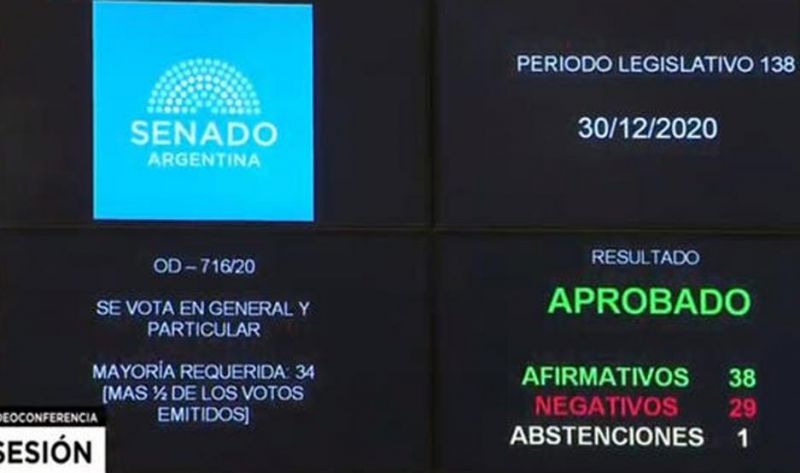 Tiempo de lectura: 49 segundosEl Senado aprobó esta madrugada el proyecto de Interrupción Voluntaria del Embarazo con 38 votos a favor, 29 en contra y una abstención.