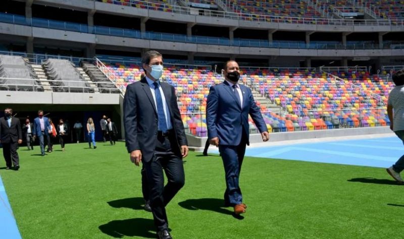 El Dr. Nimer quedó gratamente impresionado, especialmente con el estadio Único y el Natatorio Olímpico, obras de las cuales realizó comentarios muy favorables.