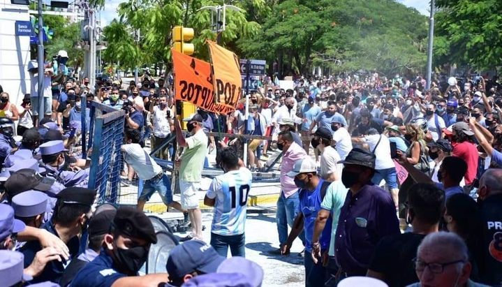 El anuncio del gobierno de Formosa de que la ciudad capital regresará a la Fase 1 del Aislamiento Social, Preventivo y Obligatorio (ASPO) por la aparición de nuevos casos de Covid-19 generó protestas en los alrededores de la Casa de Gobierno provincial, que derivaron en enfrentamientos entre manifestantes y policías quienes respondieron con gases y balas de goma.