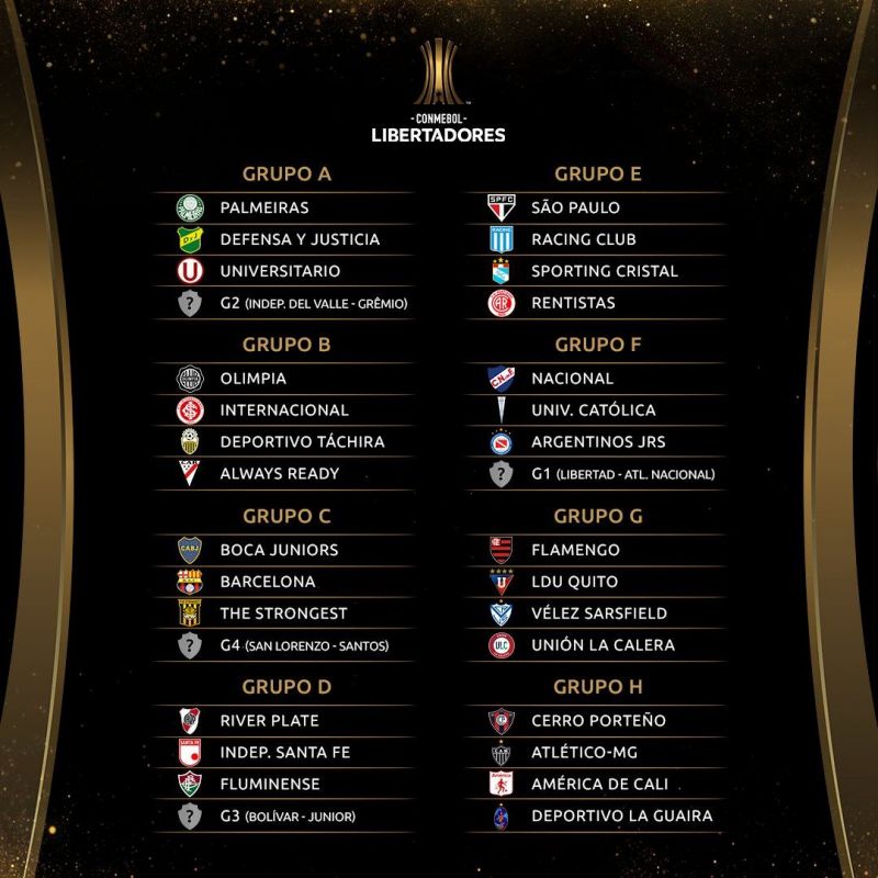 Grupo A: Palmeiras, DEFENSA Y JUSTICIA, Universitario (Perú) y Independiente del Valle (Ecuador) o Gremio (Brasil).