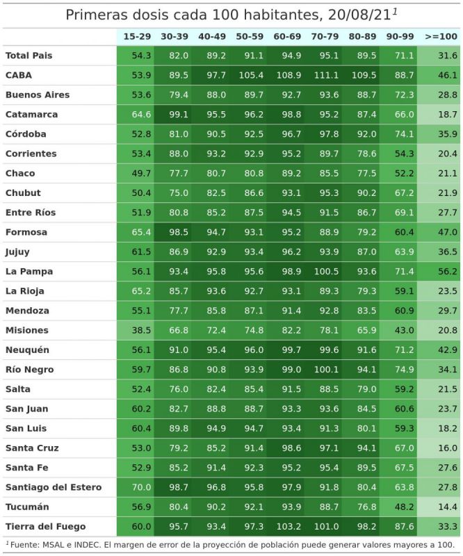 También en el resto de las franjas etarias, la provincia llega a niveles cercanos al 100%, con 98,7% de 30 a 39 años; 96,8% de 40 a 49; 95,8% de 50 a 59; 97,9% de 60 a 69; 91,8% de 70 a 79 años.