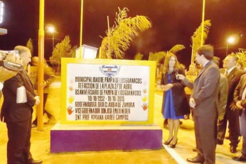 PAMPA DE LOS GUANACOS, Copo (C) A pesar de las bajas temperaturas reinantes una multitudinaria concurrencia de público acompañó el acto central realizado en la Plaza 10 de octubre correspondiente al 83° aniversario de la ciudad. El presidente provisional de la Cámara de Diputados de la provincia Marcelo Barbur en representación del Gobierno de la provincia encabezo el acto. Barbur fue recibido por la intendente Prof. Viviana Campos a quienes acompañaron también el subsecretario de gobierno Hugo Zabaleta y los intendentes de Monte Quemado Carlos Hazam, de Clodomira Marisa Herrera, de Campo Gallo, Francisco Alanis y comisionados de la zona. En la oportunidad se dejaron inauguradas las obras de remodelación de la Plaza 27 de Abril. También Barbur hizo entrega en nombre del Gobierno de las llaves de una ambulancia 0km, Zabaleta por su parte hizo entrega de las llaves de una pala cargadora frontal. En tanto también se entregaron las llaves de 5 viviendas sociales del programa de erradicación de ranchos a Eva Pereyra, Natalia López, Yésica Escalada, Noelia Orellana y Yisela Palomo. Tambien se dieron a conocer anuncios del Gobierno que están enmarcados dentro del programa "Más cerca, más municipio" perteneciente al Ministerio de Infraestructura de la Nación para la construcción de 500 metros de pavimento articulado con un valor de $ 1.423.475. También para la construcción de 15 cuadras de cordón cuneta por un valor $ 1.106.632. Y en ejecución 1.800 metros de vereda reglamentaria $ 300.000. Al hacer uso de la palabra la intendenta Campos agradeció a la gobernadora Claudia de Zamora, al vicegobernador José Neder y al senador nacional Gerardo Zamora por el apoyo y acompañamiento a su gestión de gobierno que le permite tener un crecimiento sostenido en obras. Por su parte Barbur dijo sentirse profundamente honrado de poder acompañar a los vecinos en este día especial y transmitió las disculpas de la gobernadora y del vicegobernador por no poder estar presentes por cuestiones de agenda, pero expresó su compromiso de seguir acompañándolos en este periódo de crecimiento de esta ciudad y de la provincia. "Todo lo entregado redunda en mejores servicios y mejor calidad de vida para todos ustedes". Dijo Barbur. l Publicado el 13/10/2015