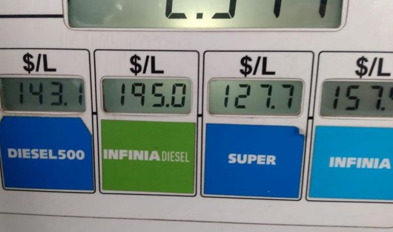 Este nuevo incremento representa la suba del 21%. En ese sentido, el litro de este combustible aumentó en el caso del diesel 500, de $123,40 a $143,10 mientras que el Infinia, tuvo un incremento de $161 a $195.