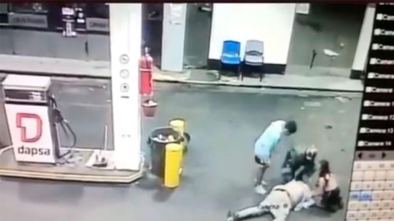En ese momento, y según comentó Adrián, la moto se va y cruzan desde un negocio cercano a la estación de servicio más de 15 personas.