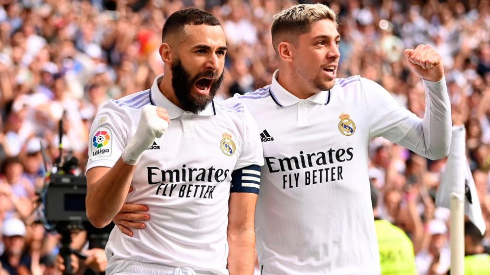 En el estadio Santiago Bernabéu, el campeón de España y de Europa borró de la cancha a Barcelona y encaminó su triunfo con los goles del francés Karim Benzema y el uruguayo Federico Valverde, a los 12 y 35 minutos del primer tiempo, respectivamente.