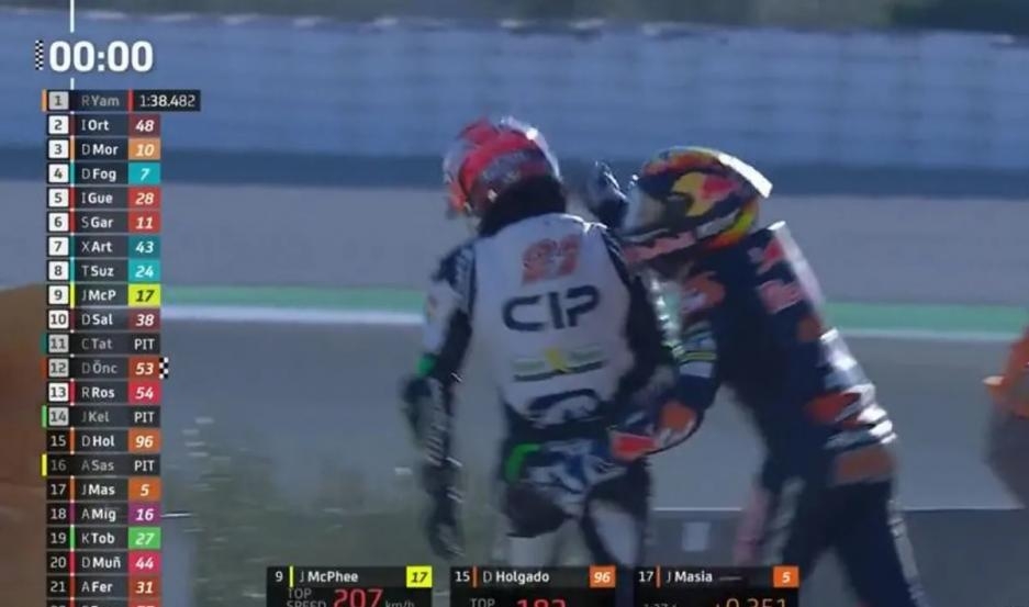 El final de la tercera tanda de entrenamientos del MotoGP en el Gran Premio de la Comunidad Valenciana vivió este sábado una gresca insólita que involucró a los pilotos Kaito Toba y Jaume Masiá.