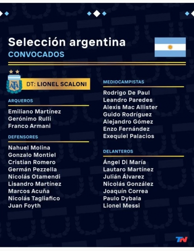 Este viernes, el entrenador de la Selección Argentina dio a conocer la lista completa de convocados para participar el Mundial de Qatar 2022, con tres novedades: Paulo Dybala, Juan Foyth y Joaquín Correa.