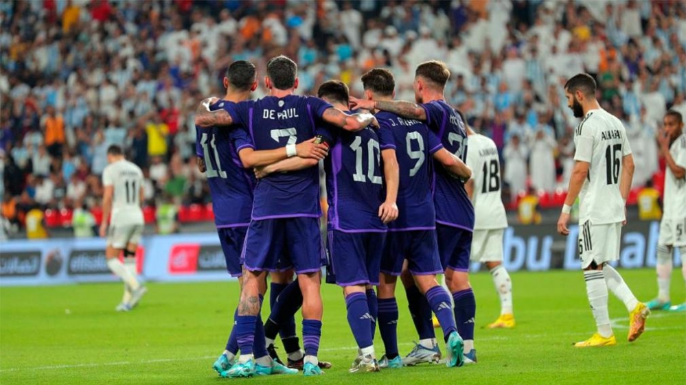 En la segunda parte, Joaquín Correa (14m.) selló la goleada en el estadio Mohamed Bin Zayed de Abu Dhabi que vibró con la presencia del mejor jugador del mundo y de las estrellas de la "Albiceleste".