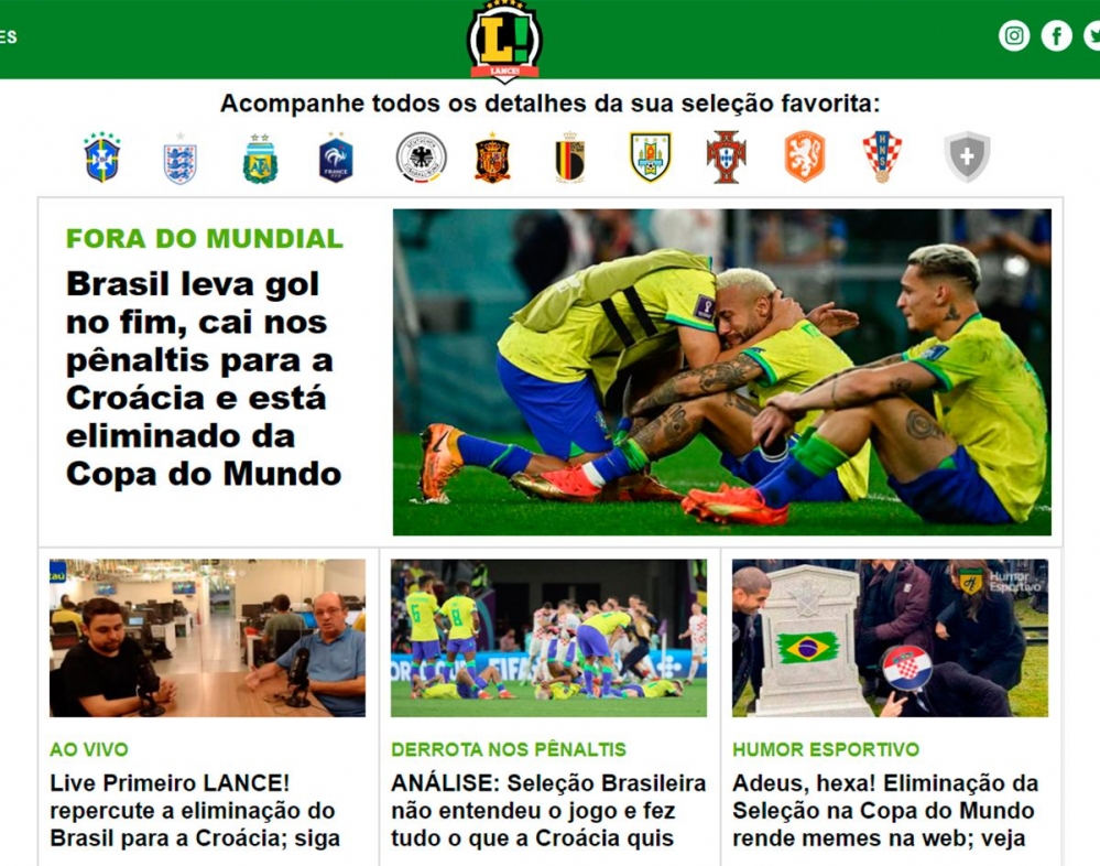 "Fuera del Mundo. Brasil saca gol al final, cae en los penaltis con Croacia y queda eliminado del Mundial. La Selección brasileña no entendió el juego e hizo todo lo que quería Croacia", publicó el periódico deportivo "Lance!".