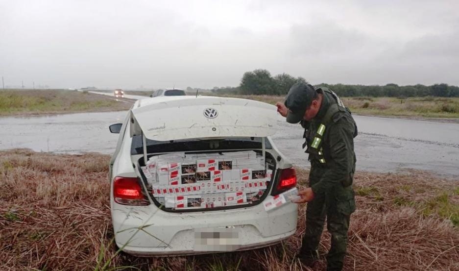 Momentos más tarde, personal destacado en el lugar, halló el rodado abandonado y sin ocupantes a 10 kilómetros, por lo que procedió a realizar una requisa que resultó en el hallazgo de 5.730 paquetes de cigarrillos de origen extranjero sin aval aduanero.