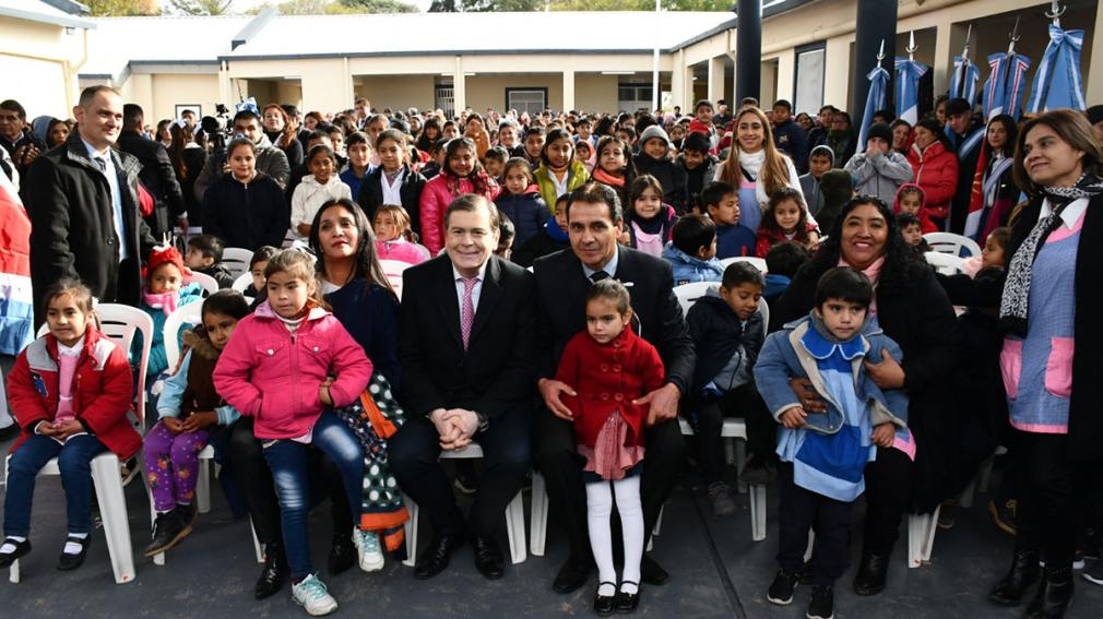 Ante un patio colmado de alumnos y vecinos, el gobernador ratificó su determinación de seguir invirtiendo para consolidar el crecimiento de la provincia, con la educación como parte fundamental que permita formar a las nuevas generaciones con las capacidades necesarias para el desarrollo, acompañado por obras y avances tecnológicos que permitan hacer frente a los nuevos desafíos.