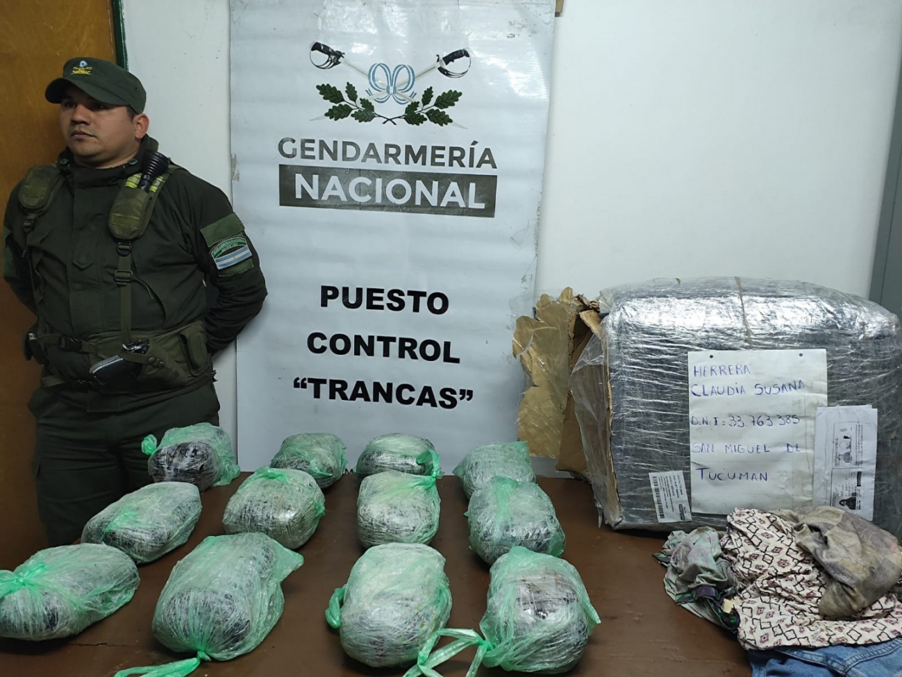 Momentos más tarde, integrantes de la misma Unidad, controlaron un transporte de encomiendas en el mismo puesto del Peaje Molle Yaco y descubrieron 12 paquetes amorfos con una sustancia vegetal con resultado positivo para “Cannabis Sativa” y un peso de 12 kilos 595 gramos.