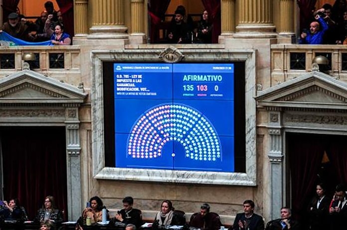 La Cámara de Diputados aprobó este martes y giró al Senado el proyecto de ley de reforma del Impuesto a las Ganancias que elimina la cuarta categoría que grava los sueldos de los empleados y creó un tributo sobre los altos ingresos que se pagará cuando se cobren haberes superiores a los 15 salarios mínimos, vital y móvil (SMVM) mensuales.