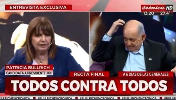 La candidata por Juntos por el Cambio, Patricia Bullrich, estuvo presente en los estudios de Crónica para una charla mano a mano con Chiche Gelblung. Por supuesto que la entrevista tuvo puntos salientes, sin embargo, en las redes sociales comenzó a circular un recorte con un fallido de la ex ministra de Seguridad.