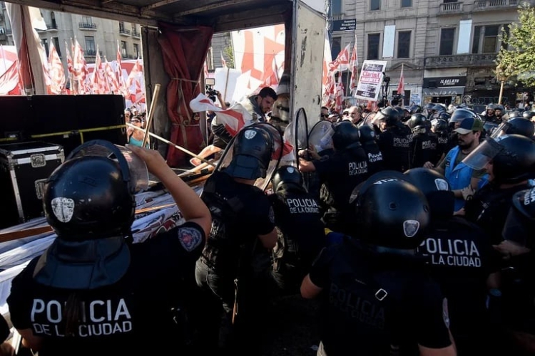 Hubo momentos de tensión y se registraron al menos un detenido y un herido. Además, pasadas las 18.30 los manifestantes cortaron avenida Rivadavia, mientras que los vehículos de Gendarmería interrumpieron momentáneamente el tránsito en Entre Ríos. Los gendarmes avanzaron sobre la protesta, con gases lacrimógenos y empujones.
