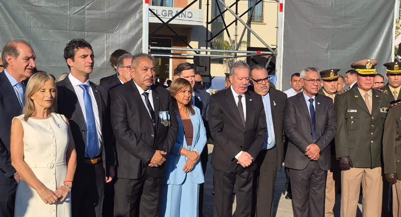 El acto cuenta con una amplia participación de funcionarios provinciales y municipales, legisladores y representantes de las fuerzas de seguridad, quienes se unieron a los protagonistas de la jornada: los veteranos de guerra y familiares de los caídos.