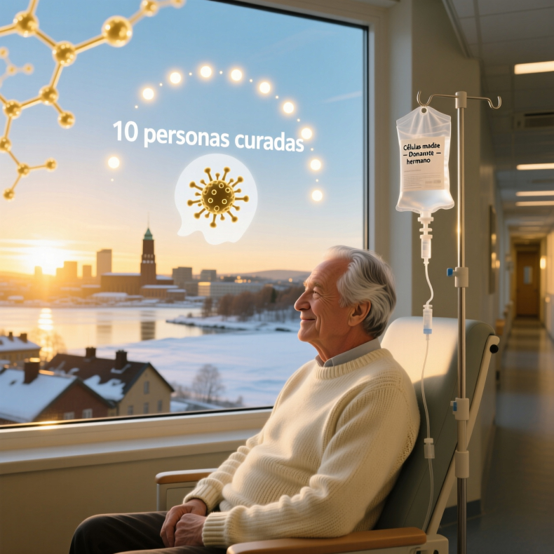 Diagnosticado con VIH a los 44 años, este paciente noruego recibió en 2020 un trasplante de células madre para tratar un síndrome mielodisplásico, un tipo de cáncer hematológico. A diferencia de otros casos, el donante no fue anónimo: fue su propio hermano, quien, de forma inesperada, resultó portador de la mutación genética CCR5Δ32/Δ32.