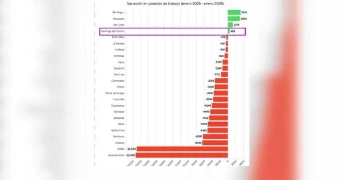 Según datos publicados por el Ministerio de Capital Humano de la Nación, elaborados en base a estadísticas del Sistema Integrado Previsional Argentino (SIPA), en el último año se destruyeron 94.189 empleos en el sector privado asalariado formal. Sólo en cuatro provincias se lograron crear puestos de trabajo, número que estuvieron por encima de los empleos que se perdieron. Allí figura Santiago del Estero.