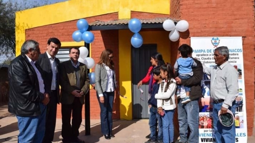 Continúa en todo el territorio provincial el programa de viviendas sociales implementado por la Gobernadora de la provincia, Dra. Claudia de Zamora. En la oportunidad, el ministro de Desarrollo Social, Dr. Ángel Niccolai, entregó diez viviendas sociales en Pampa de los Guanacos, departamento Copo.