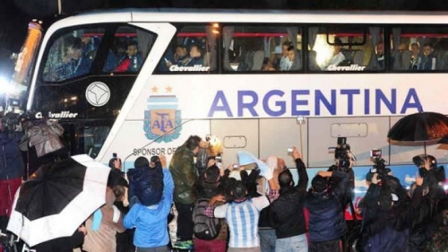 El plantel que conduce Martino regresó anoche a la Argentina y a pesar de la lluvia fue recibido por un numeroso grupo de fanáticos que ratificó su devoción y confianza en Messi.