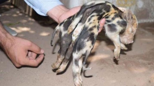 En Los Mochis, Sinaloa, México, una familia recibió a un particular chanchito que nació con cuatro patas extra. La familia, dedicada a la crianza de marranos, presenciaron el nacimiento y por un momento pensaron que se trataba de dos cerditos, pero jamás vieron salir la otra cabeza.